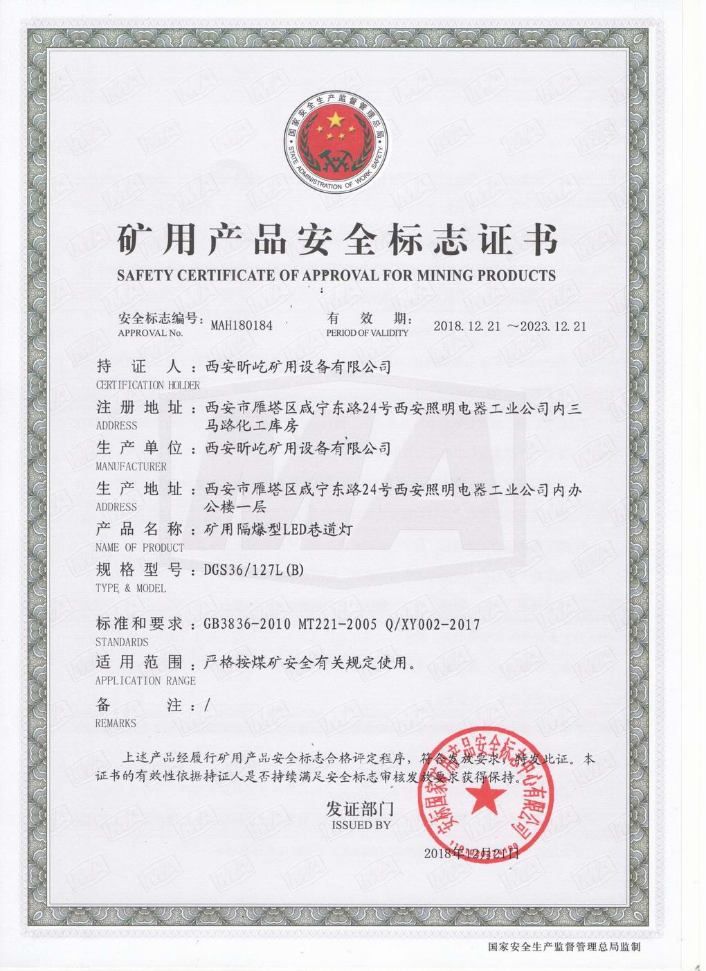 巷道燈DGS36/127(B)安標(biāo)