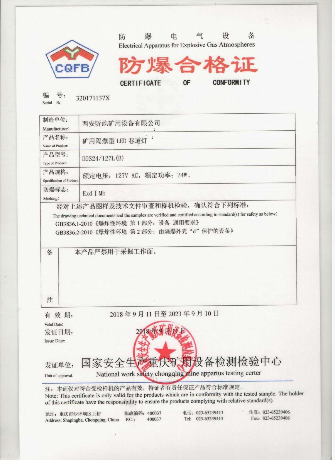 巷道燈DGS24/127(B)防爆證